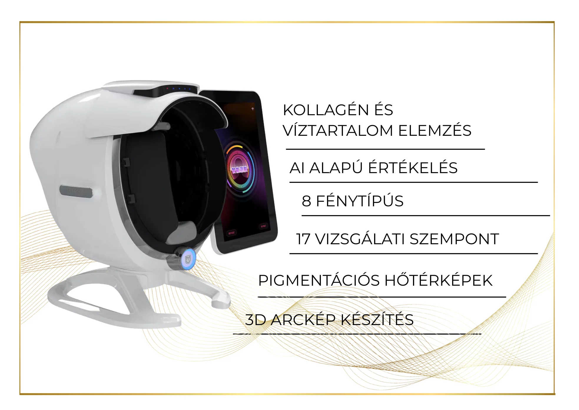 különböző bőrparamétert értékel automatikusan, például: pórusok,